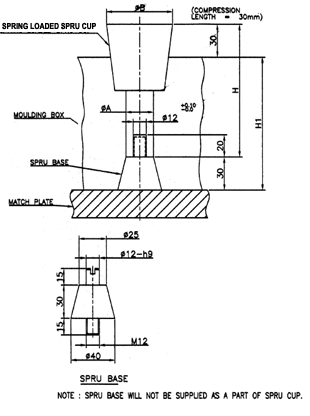 This is Pouring Cup used to provide Feeder holes in the Mould.The Pouring Cup is released from the Mould by Spring Loaded Mechanism. The specifications of the Pouring Cups will be depends on the height of the Moulding Box and the grade of the material to be poured.
